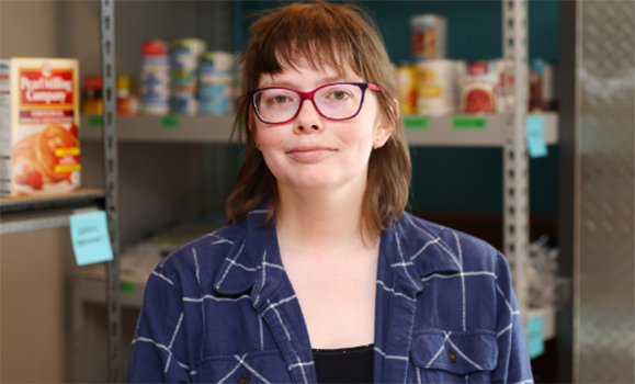 Second-year PhD student Alexe Indigo confronts the issue of food security every day. Indigo is the manager of the Agricultural Campus’s Food Pantry, which provides students with access to a variety of nutritious food items including fresh produce, dairy and eggs, and shelf-stable food.